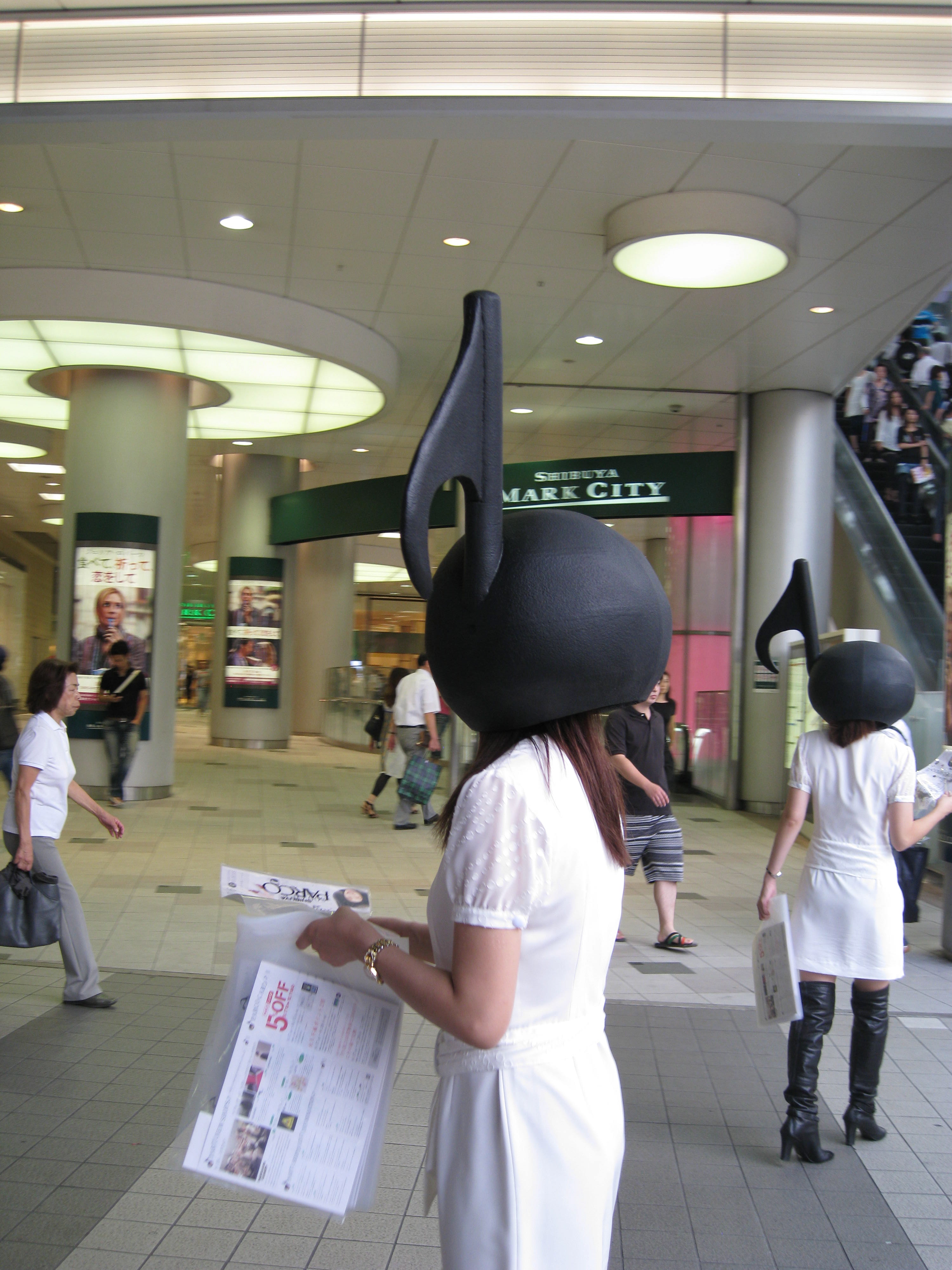 These human musical notes advertising the opening of a store distract me as I head to my bus.