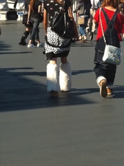 Now Offspring #1 needed to satisfy his craving for ice cream in a cone. Like circling vultures, we followed the path of ice cream cone licking park dwellers. Two flavors- Pumpkin and Milk. The Japanese don’t like their sweets as sweet as Americans so the ice cream tasted just like their names – pumpkin and milk. No sugar. Yummy. Snack food choices were extremely limited. It was either the ice cream or smoked turkey legs which apparently are a crowd favorite. Lunchtime looked like a Viking festival.