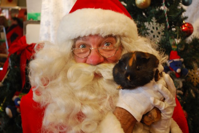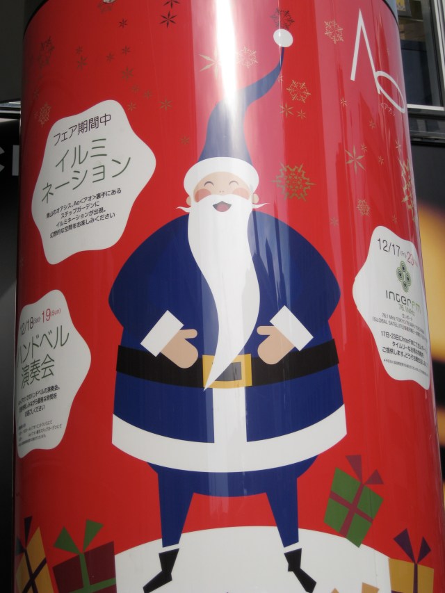 Santa arrived, but he’s wearing blue. Apparently either he or the Japanese prefer him in this hue since he is often seen in Japan wearing it.