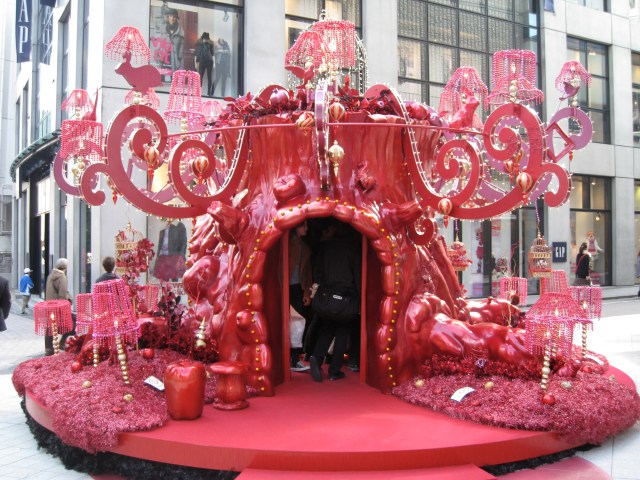 Less than 1% of the Japanese population is Christian however that hasn’t stopped the retail establishments from recognizing a shopping opportunity that would make Santa hurl coal at department store door fronts. If the Jewish culture had a mascot around which to rally, I would expect to see the Festival of Lights fully represented as well. Curmudgeon me shoved aside joyful holiday shoppers to snap this shot: