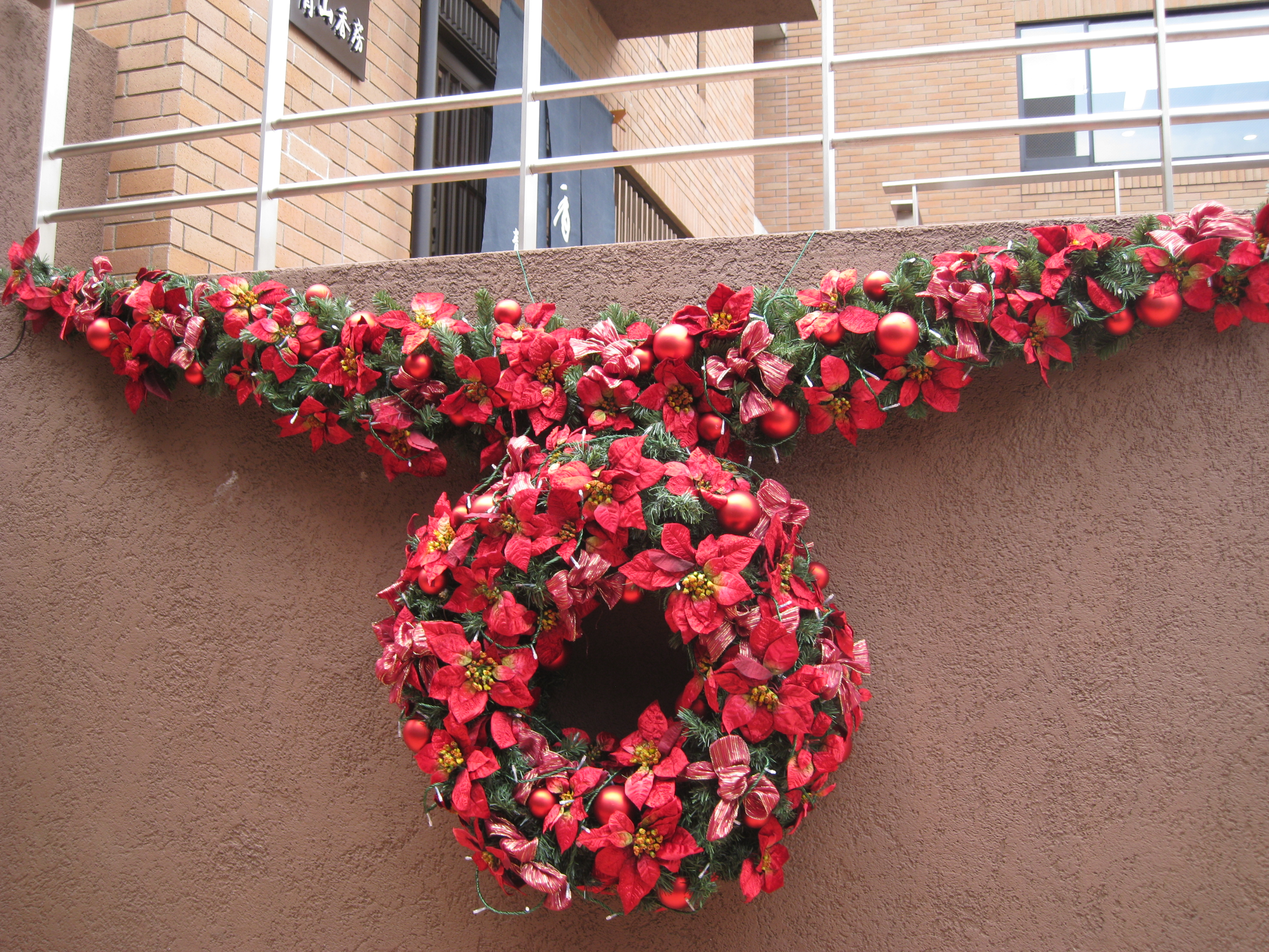 One important thing I’ve learned about the Japanese. As a culture, she will embrace a concept and develop or improve it in ways that leave one wondering why it hadn’t been done before. Once engaged on an idea, no people in the world is better at producing a quality product, with gadgetry no one realized was needed until it became a “Must have” post installment, all components working absolutely right, with little nuances added to make it “just a little better.” So I was not surprised upon my escape from the crowded shopping streets to see tasteful decorations in the lesser known areas of Tokyo. Holiday decorations that reflected the style, simplicity, and attitude of the Japanese combined with the sentiments of the season.