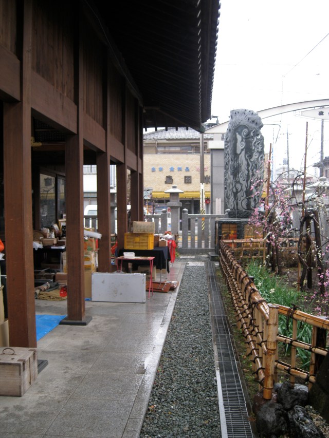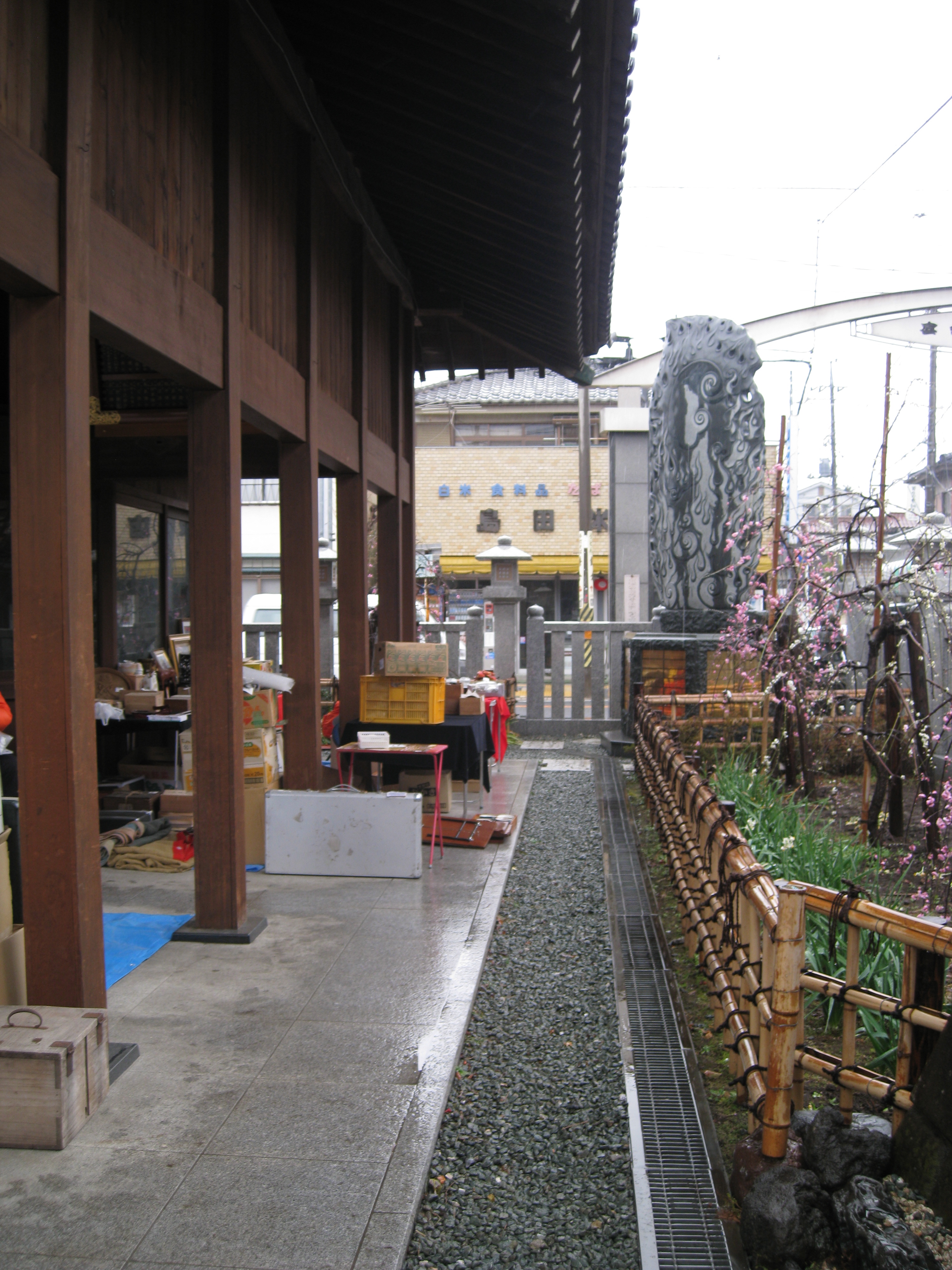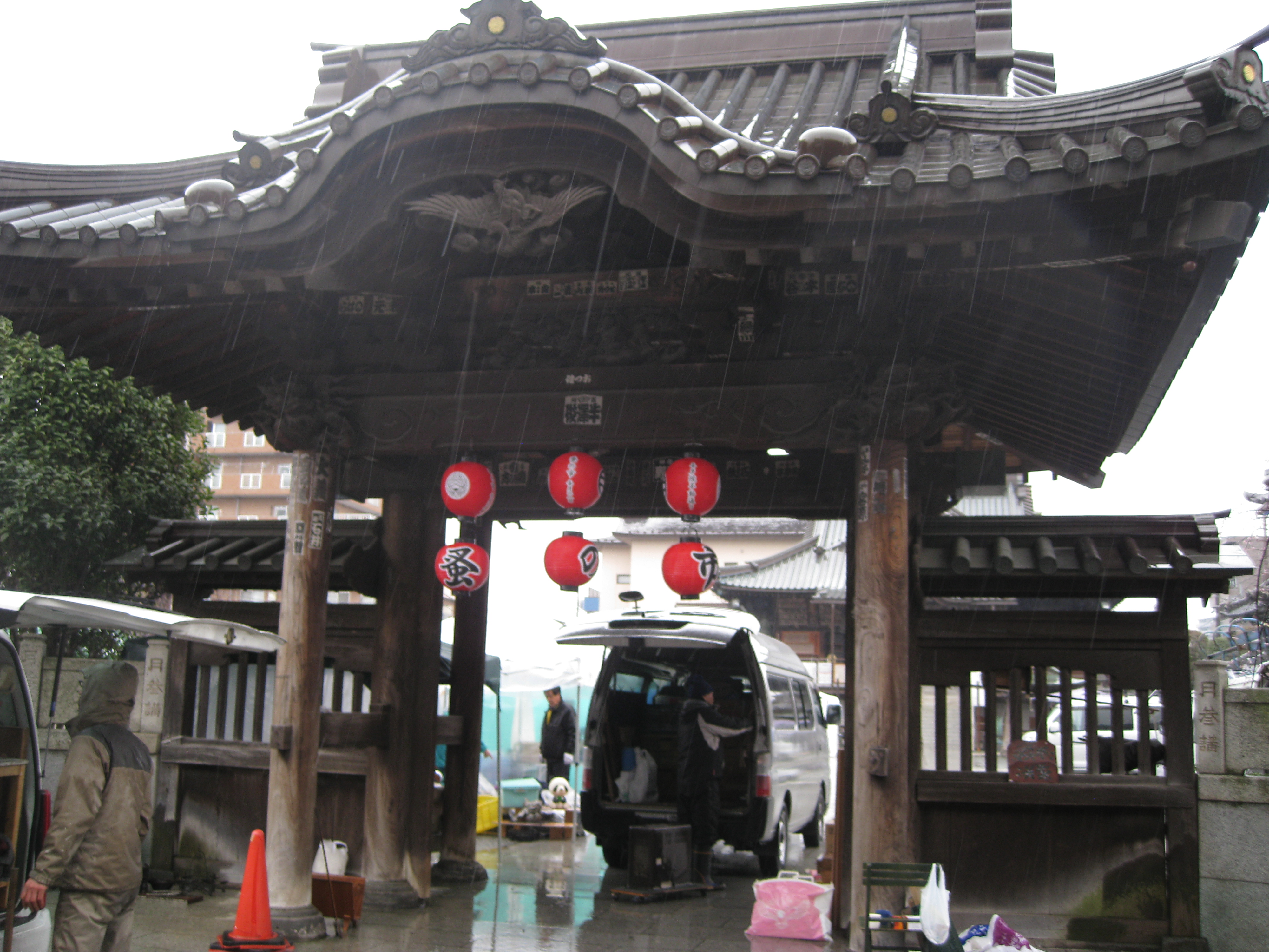 After weeks of pristine, crisp winter weather, the skies had their fill and disgorged buckets directly on me and Andretti-san. But the Shrine sale was on. Perfect- the rain would wash away my competition- no hagglers with which to compete for the precious booty laid at the foot of the buddha. My costume was chosen carefully. Gloves to hide jewelry highlighting any telltale signs of misconceived wealth and affluence, cross body bag freeing the hands for close examination of items, camera placed in pocket, holster style for quick draw, and money hidden in various pockets and purse locations so vendors would be unable to assess my financial worthiness when I claimed items “Tokai des ne”- so expensive. I just had to focus my eyes on those of the vendor for an inscrutible poker face as looking away is the best predictor of a liar, and prevent my nose from growing as I morphed in to haggling mode.