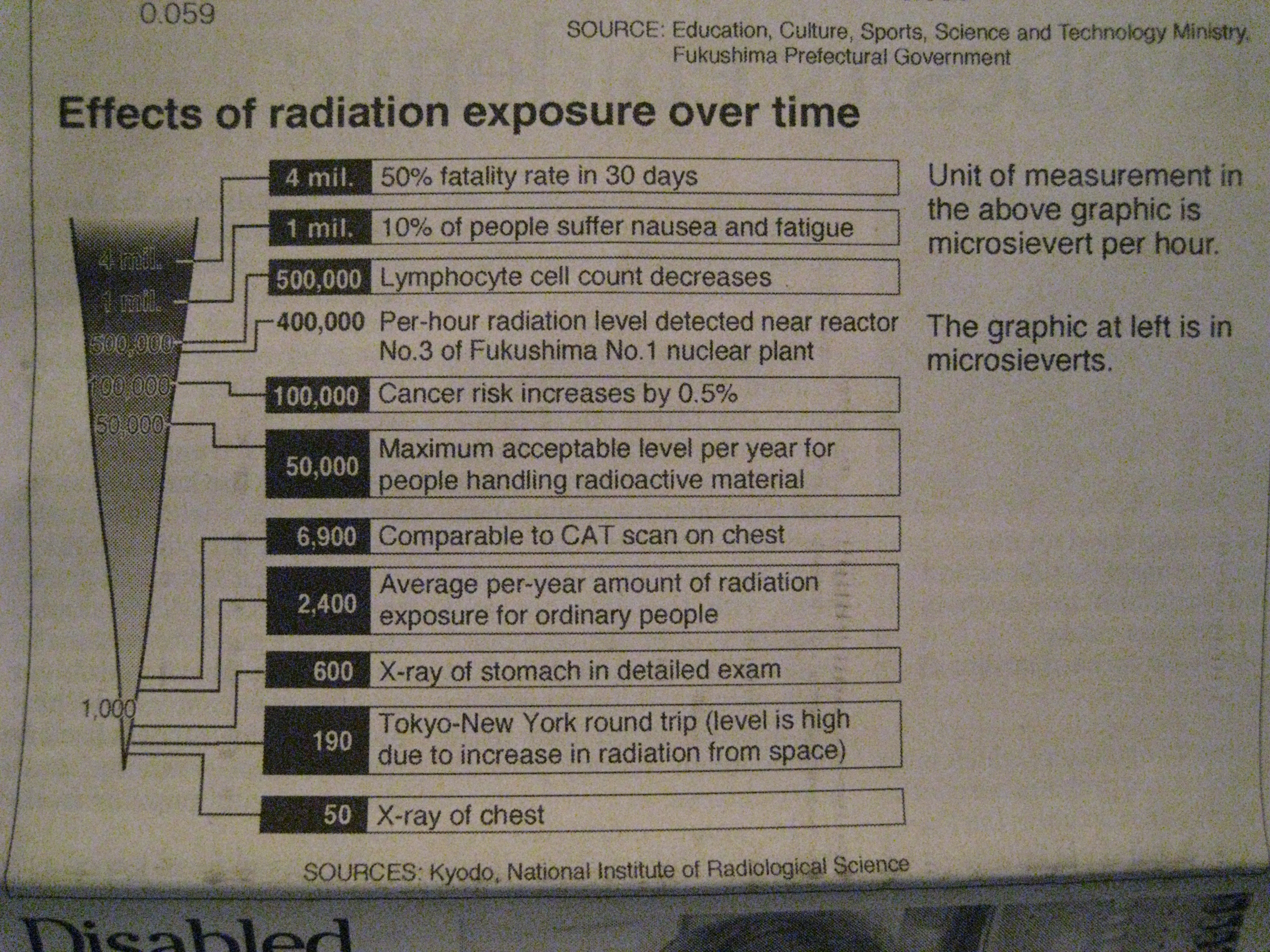 That’s a lot of homework you’re doing! I’ve been reading about the aftershocks that are the size of big California earthquakes. I don’t know how you do it, I’d be peeing in my pants all day. The effects of radiation exposure chart was interesting to read. I knew about radiation in airports and just air travel in general, but I didn’t know exactly how much it would be. I’d like to know how they determine which radiation levels are “safe”…