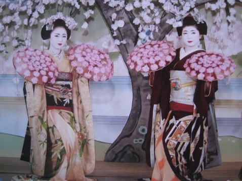 The annual kyo odori. During April, the Maiko perform for a short period of time. About an hour prior to show time, I informed the crowd of curtain time. I then plugged my ears with white ear buds to drown the screams of protest, attempts to negotiate a way out, and claims of sudden onset diarrhea.