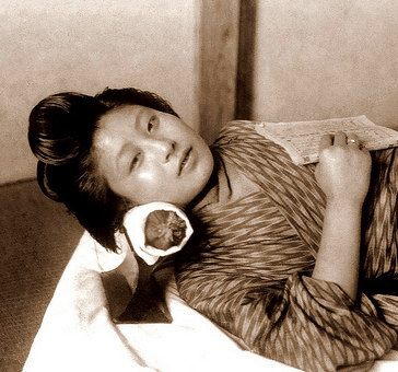 Beauty is pain. The tugging of the hair leaves these ladies with a bald spot. Quite a work hazard or perhaps I`m just scarred from all the hair my mother snatched off the top of my head at that age. If that isn`t enough, to preserve the salon doo, the girls sleep on a takamakura surrounded by rice. (We were such babies to whine about sleeping in rollers and coke cans back in the day) The rice sticks to the hair in the event of midnight cheating.