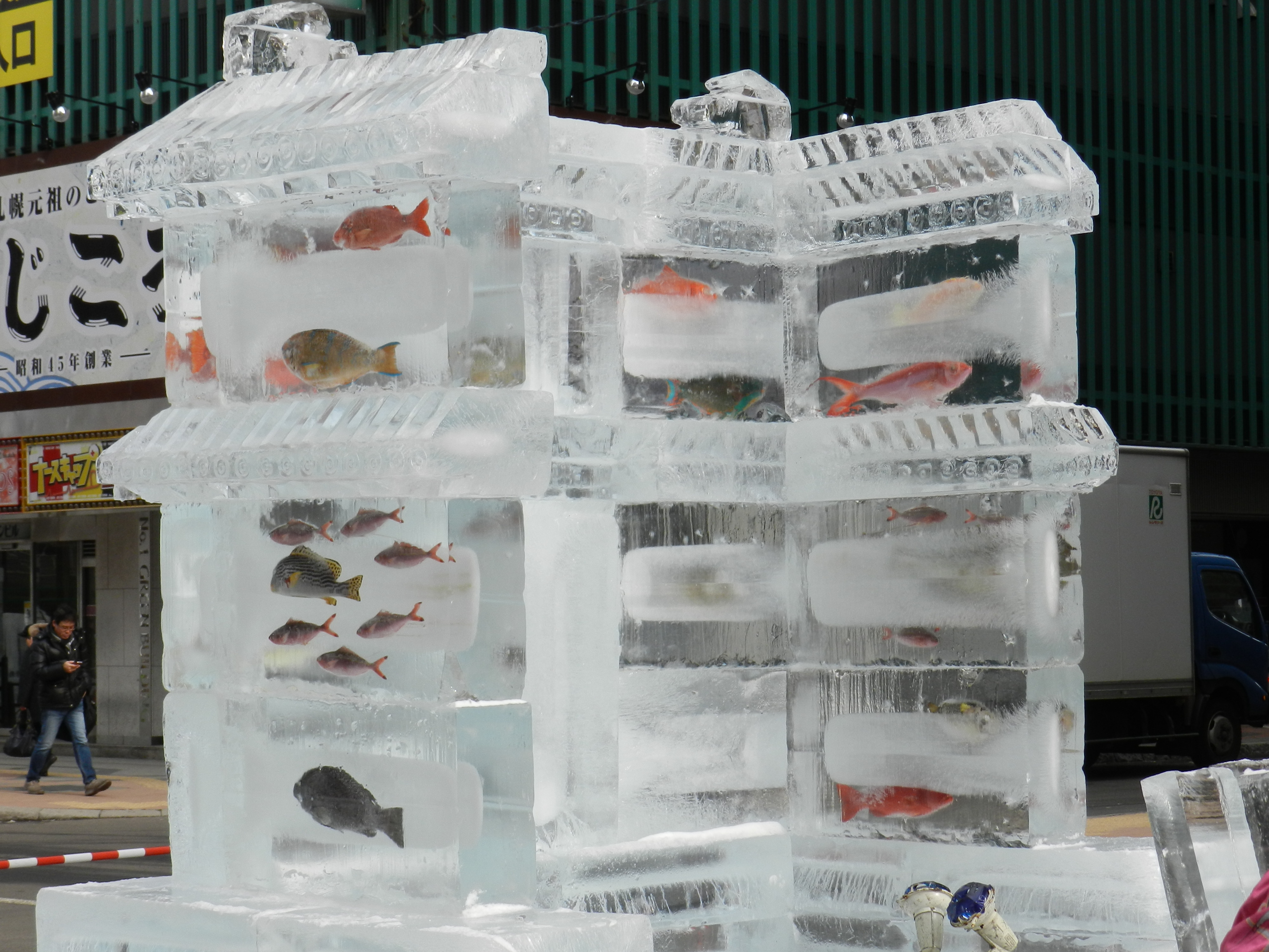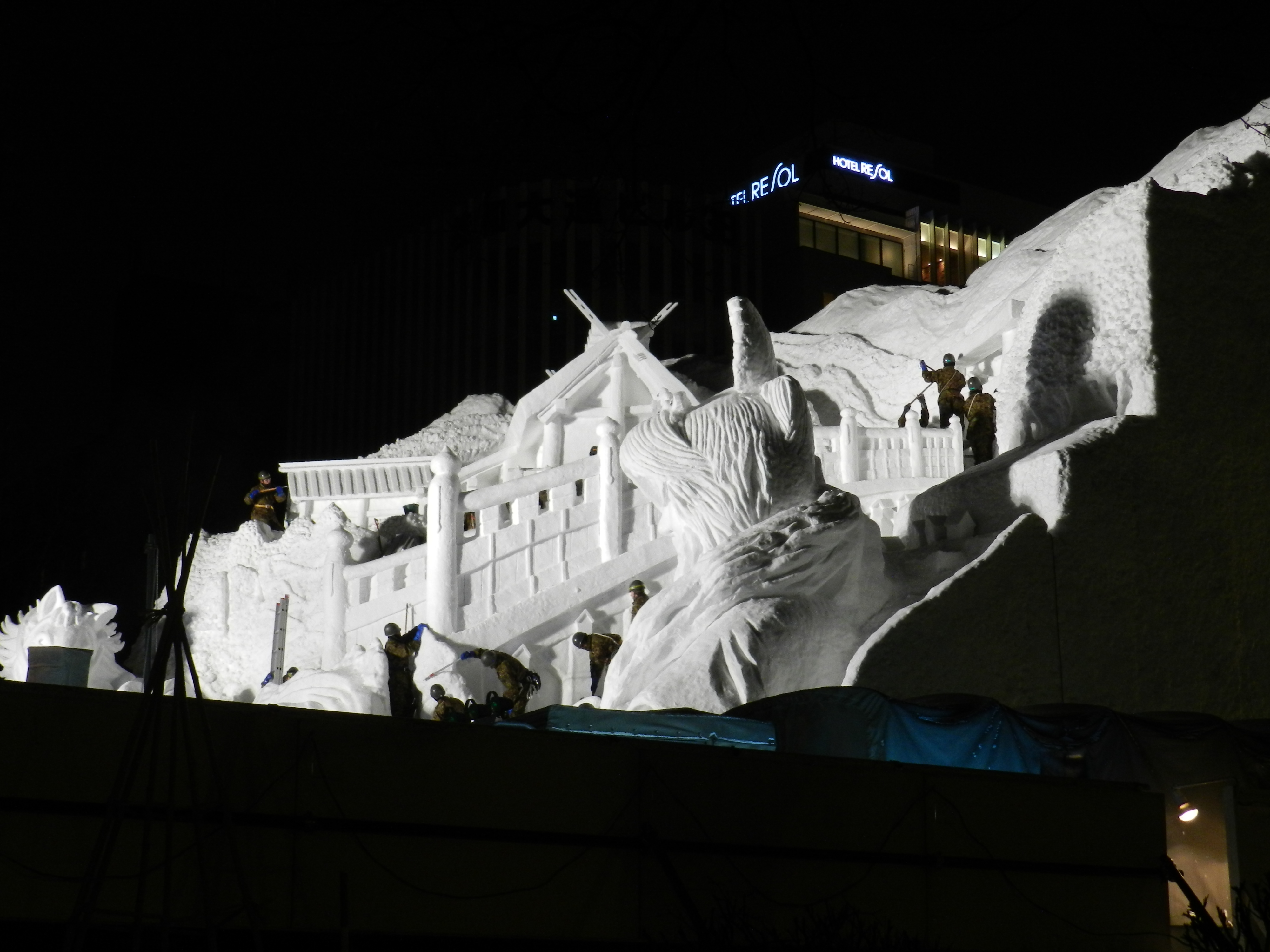 Two boulevards were set up with Snow and Ice Sculptures. The snow sculptures were all carved by the military reserve units. Although only a short ferry ride from Sapporo to Russia, the military must feel fairly confident that this skill is a useful one in case the defense of Japan is necessary.