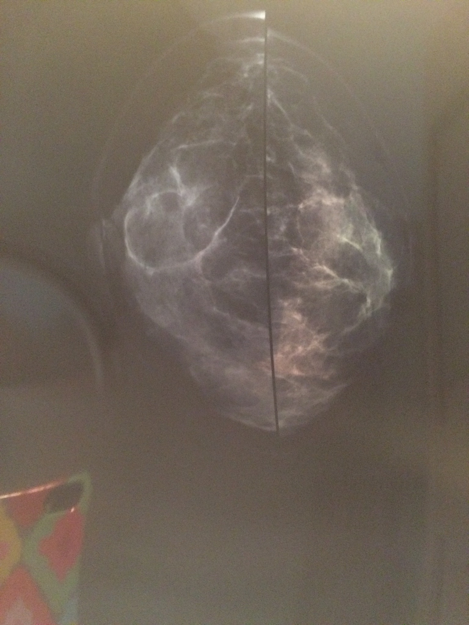 “Umm, Mrs Clampitt,” she hesitated as she leaned way to close to my face for comfort, ” these films are of your latest mammogram.”