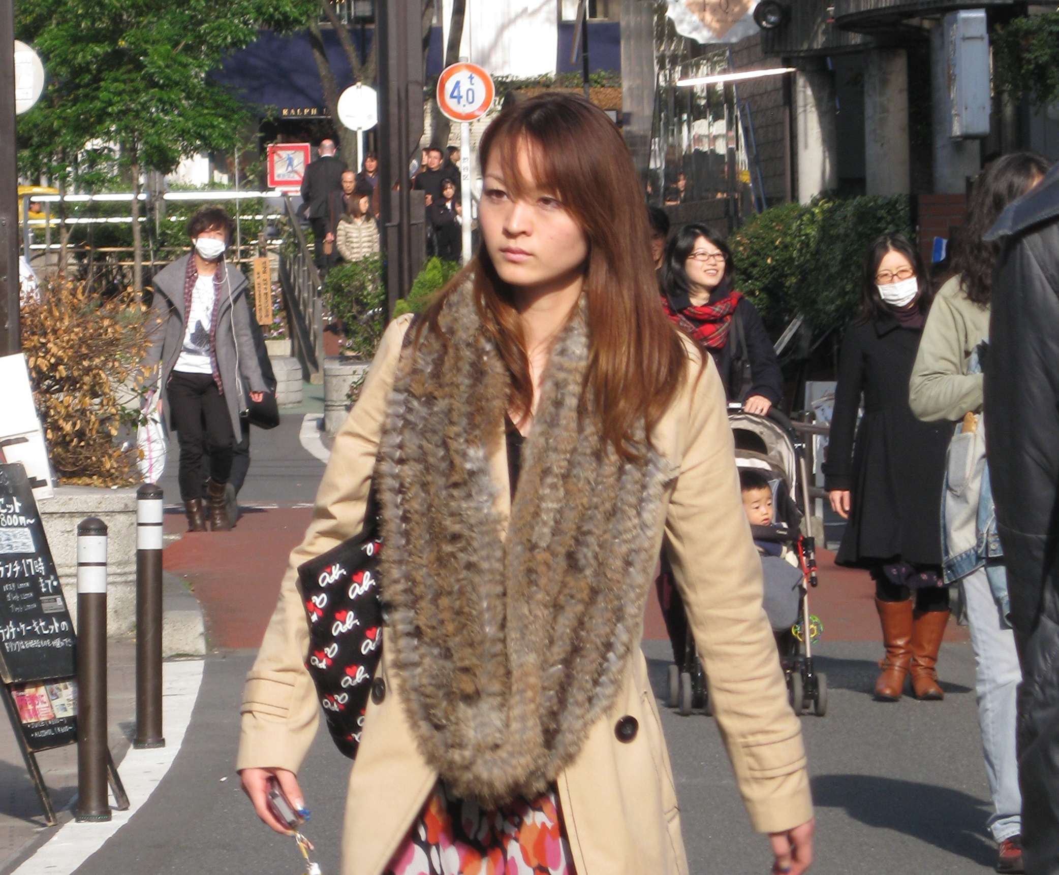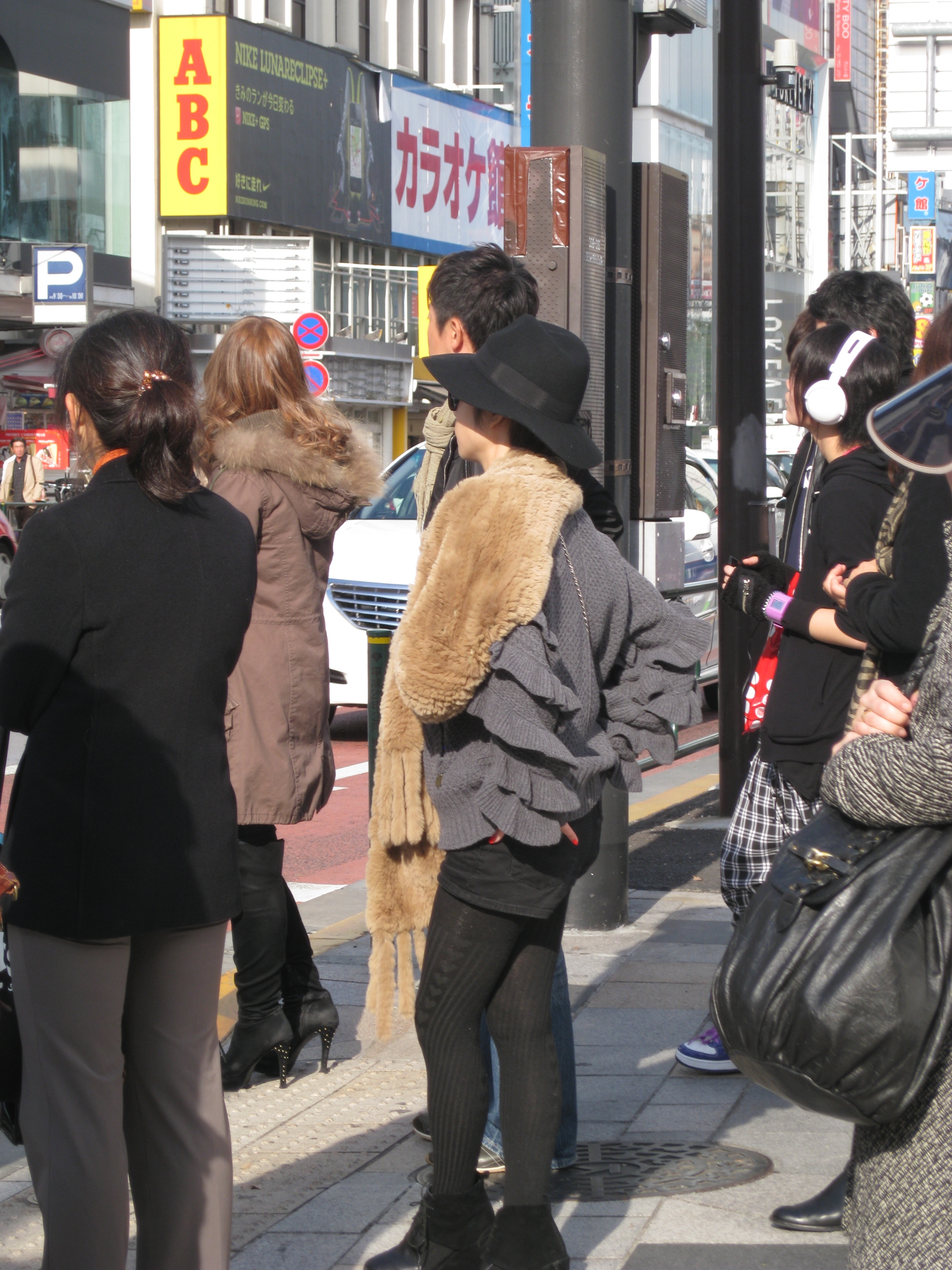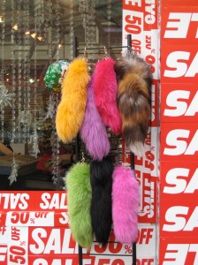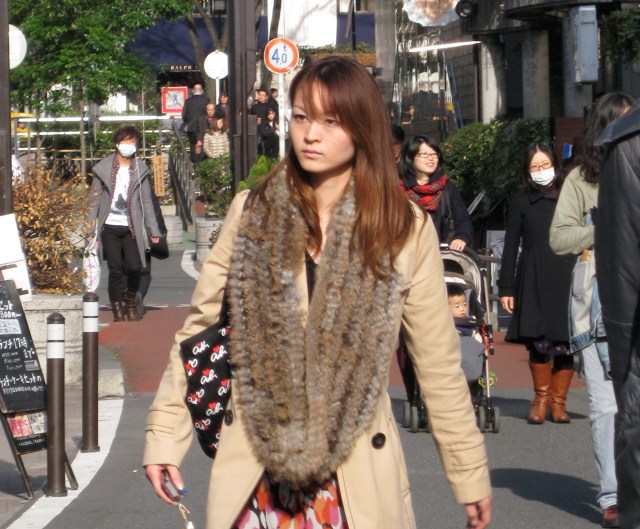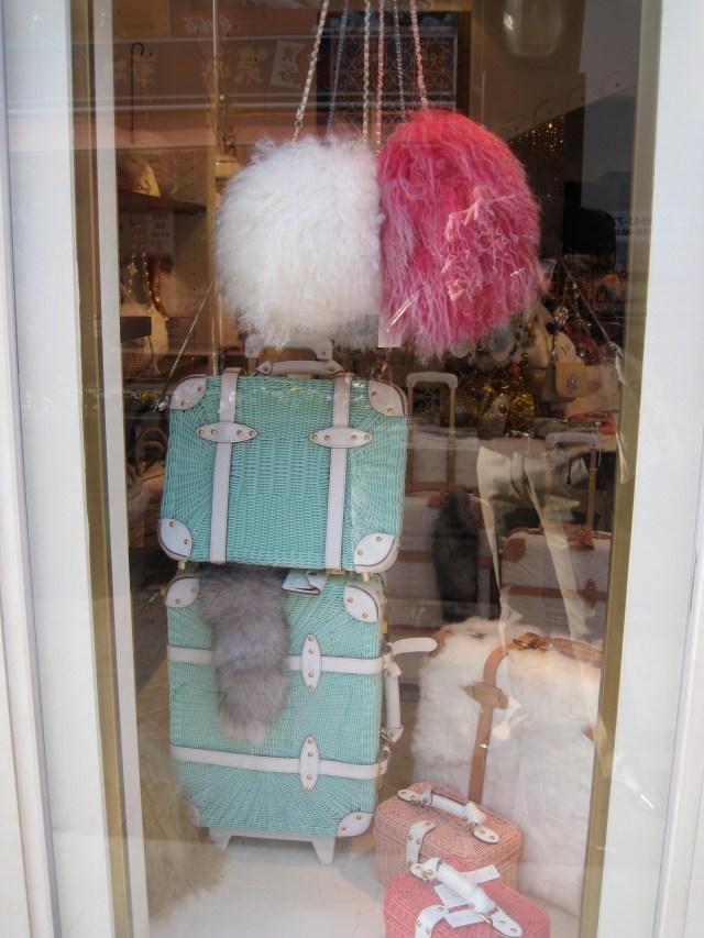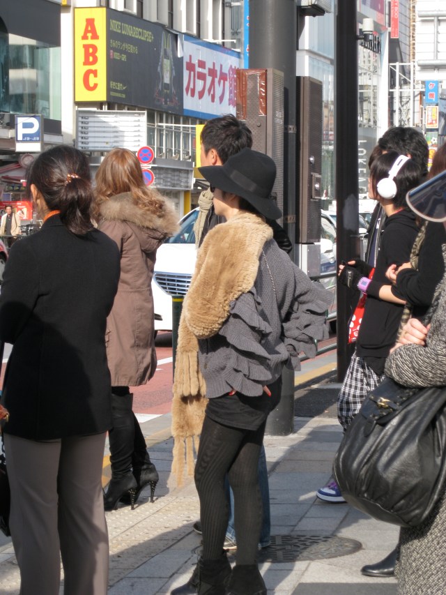 The temperature dipped below 60 degrees and the fashionistas in Harajuku simultaneously coordinated this season’s trendy look- fur – everywhere on everything. Here’s how the market research works for the big players. All major labels- Gucci, Missoni, Chanel, Dior, etc- have flagship stores along the main street- Omotesando- but stretching the length behind snakes another street- choked by crowded shops where preeminent fashion houses “plant” samples without identifying branding in order to test sales appeal. While Japanese matrons and well advised tourists shop along Omotesando, the hip Japanese shop trendy Takeshita buying up hidden predictors of the “newest trend.”