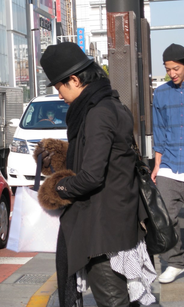 No other country can accessorize like the Japanese. I spit in the faces of the French with pitiful attempts at embellishing an outfit with a lonely scarf. True genius is exemplified in rabbit pelt stoles, lenseless glasses, and always a trinket, bobble or hat upon the head thus elevating one’s stature and elongating the body. GENIUS I say. The Japanese pull it off, I approximate a deranged gypsy.