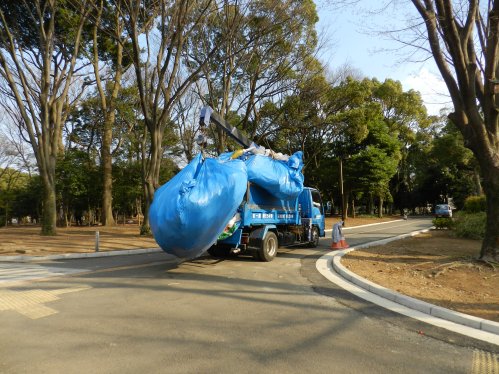 These truck drivers have a wonderful spread inside the cab complete with alcohol free sake and Costco sushi. When I passed they were enjoying a post lunch siesta.